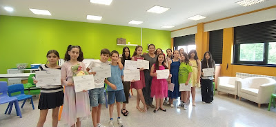 Vou poñer unhas fotiños dos días das entregas, non está todo o mundo, xa se sabe, con estes cambios de temperatura houbo bastantes gripes e non saen na foto, pero levar levaron os seus diplomas e pequenos agasallos cos que dende a biblioteca queremos devolver dalgún xeito o cariño que nos dan eles e elas participando nas nosas actividades. Ademais como coincidía cunha nova representación da obra de teatro "Mamasiña, que medo" os actores e actrices tiveron que marchar escopetados unha vez lles din o diploma, é o que ten ser artistas!!